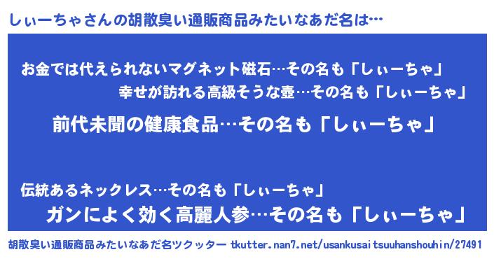 | 意味不明あだ名 | 『永久保存しぃーちゃ』『自称しぃーちゃ』 |