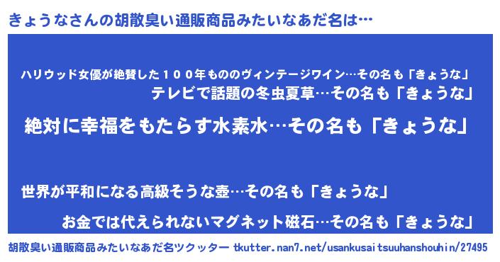 | 意味不明あだ名 | 『永久保存きょうな』『自称きょうな』 |