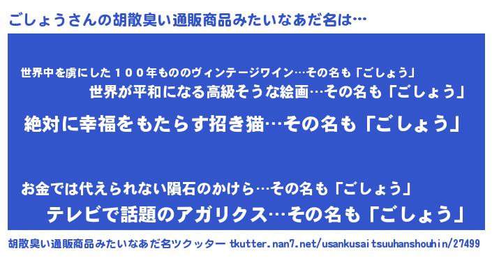 | 意味不明あだ名 | 『永久保存ごしょう』『自称ごしょう』 |