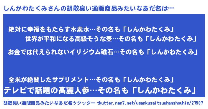 | 肩書あだ名 | 『しんかわたくみ助手』 |