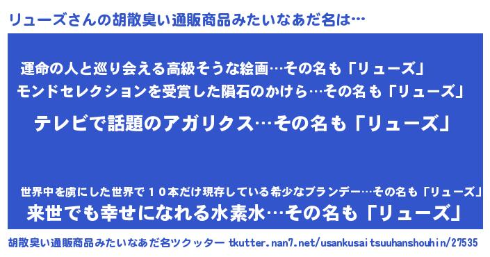 | 女子向けラノベタイトル風あだ名 | 『リューズアンティーク』 |