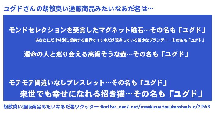 | 恥ずかしいあだ名 | 『ユグっちょ』『ボンバーヘッドユグ』 |