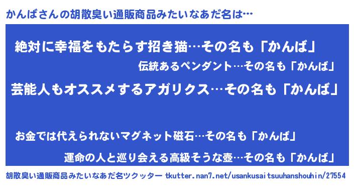 | 意味不明あだ名 | 『自称かんば』『永久保存かんば』 |