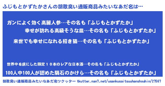 | 意味不明あだ名 | 『永久保存ふじもとかずたか』 |