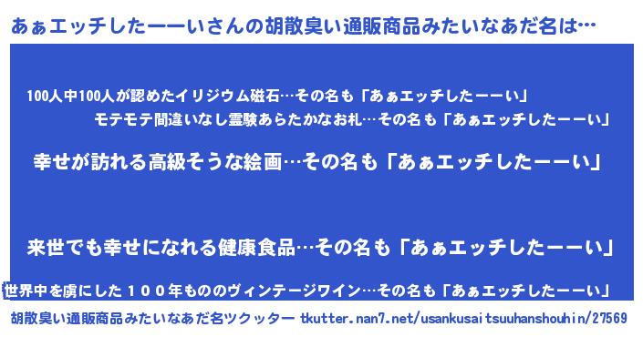 | 男性向けラノベタイトル風あだ名 | 『はたらくあぁエッチしたーーいさま!』 |