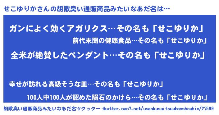 | 意味不明あだ名 | 『とにかく怪しいせこゆりか』 |