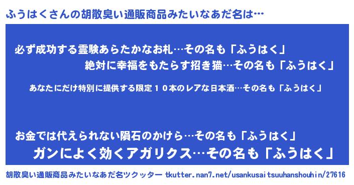 | 意味不明あだ名 | 『住所不定無職ふうはく(47歳)』 |