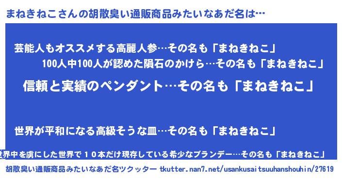 | 意味不明あだ名 | 『とにかく怪しいまねきねこ』 |