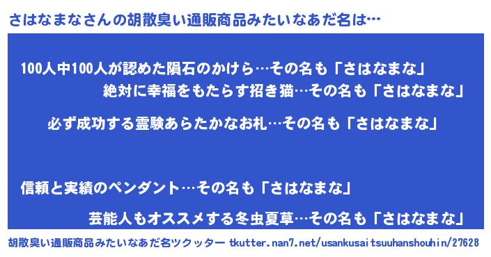 | ヘコむあだ名 | 『さはっふぃ~』『さはなまな(小並感)』 |