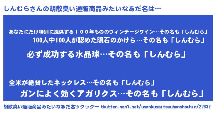 | 肩書あだ名 | 『しんむら大尉』『しんむら社長』 |