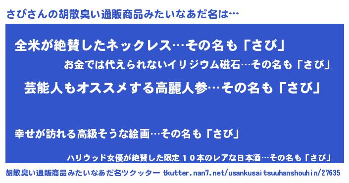 さびさんの胡散臭い通販商品みたいなあだ名をツクッター!