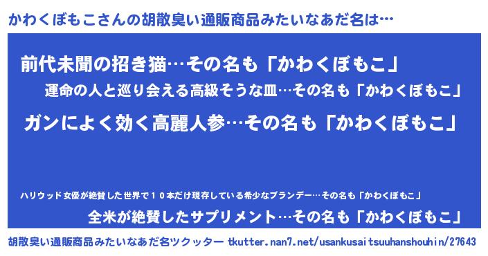 | 意味不明あだ名 | 『自称かわくぼもこ』 |