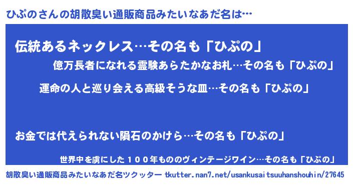 | 女子向けラノベタイトル風あだ名 | 『ひぷのの婚約者』『ひぷのは平凡を望む』 |