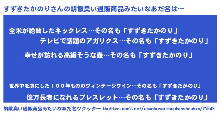 | 意味不明あだ名 | 『すずきたかのりフォーエバー』 |