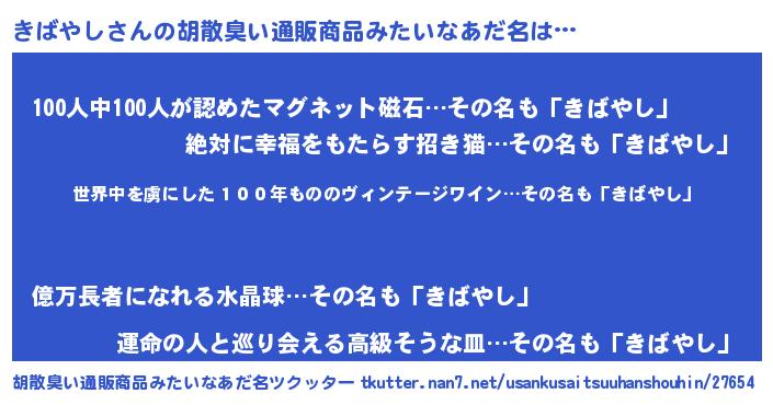 | 意味不明あだ名 | 『住所不定無職きばやし(7歳)』 |