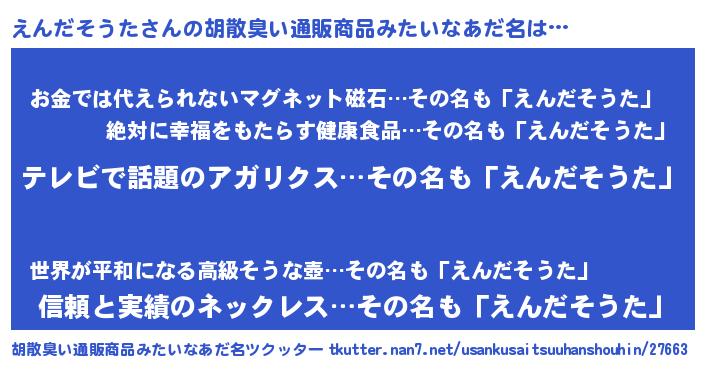 | 意味不明あだ名 | 『自称えんだそうた』 |