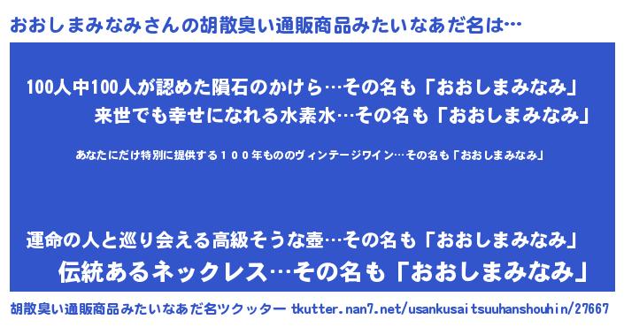 | ヘコむあだ名 | 『おおお』『おおしまみなみ(遠い目)』 |
