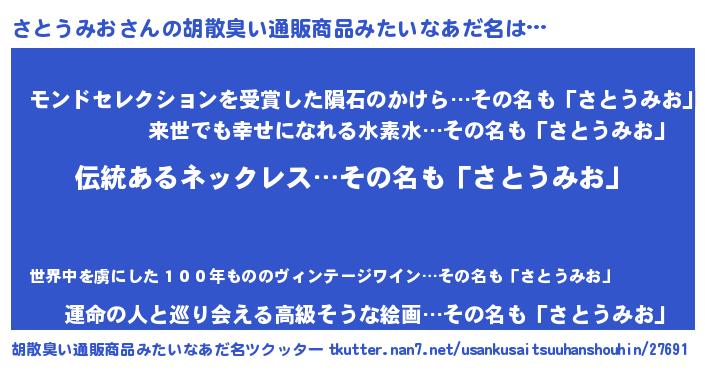 | ヒーロー風カッコイイあだ名 | 『魔戒騎士サト』『愛の使者さとうみお』 |