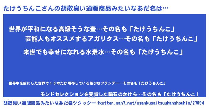 | 意味不明あだ名 | 『永久保存たけうちんこ』 |
