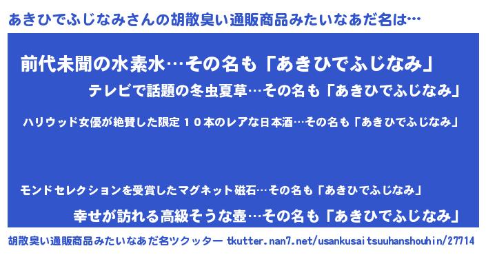 | ヘコむあだ名 | 『あきひでふじなみ(笑)』『豆乳』 |