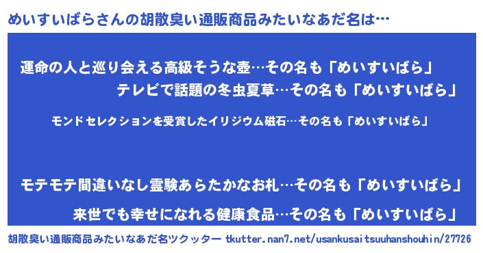 | ヘコむあだ名 | 『レバニラ』『めいすいばら(苦笑)』 |
