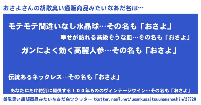 | 欧米人風あだ名 | 『ケンブリッジおさよ』『マイケルおさよ』 |