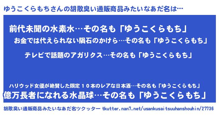 | 意味不明あだ名 | 『自称ゆうこくらもち』 |