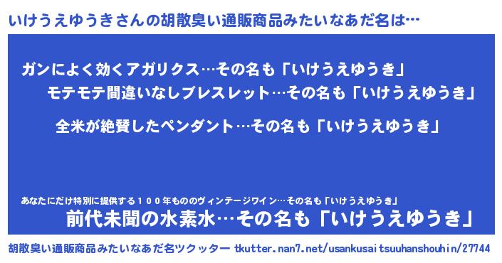 | ヘコむあだ名 | 『いけっちょ』『いけうえゆうき(爆)』 |
