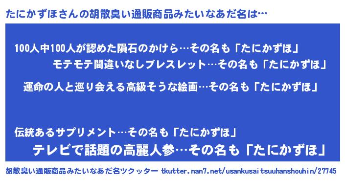 たにかずほさんの胡散臭い通販商品みたいなあだ名をツクッター!