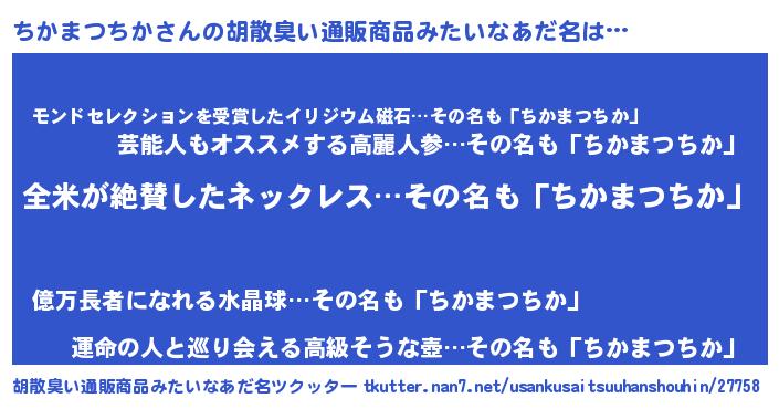 | 意味不明あだ名 | 『とにかく怪しいちかまつちか』 |