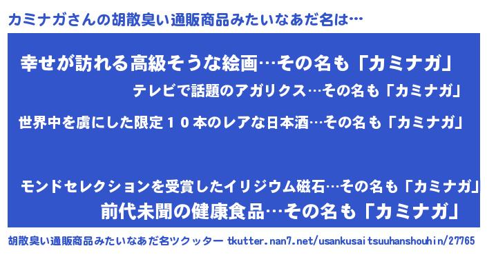 | 意味不明あだ名 | 『住所不定無職カミナガ(53歳)』 |