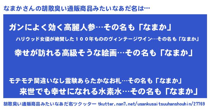| 意味不明あだ名 | 『なまかフォーエバー』『自称なまか』 |