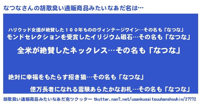 | 男性向けラノベタイトル風あだ名 | 『なつなの嫁は女の子じゃないと思った?』 |