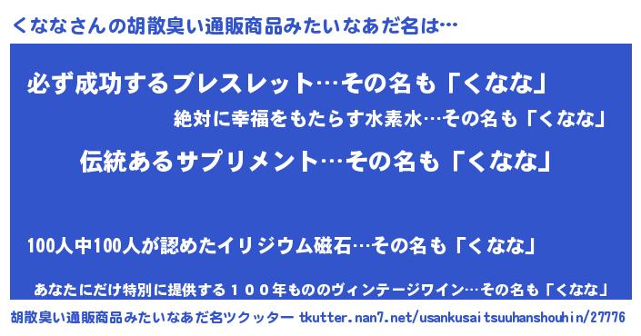 | ヘコむあだ名 | 『くなお』『くなにー』『酢こんぶ』 |
