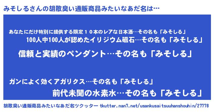 | 意味不明あだ名 | 『とにかく怪しいみそしる』 |