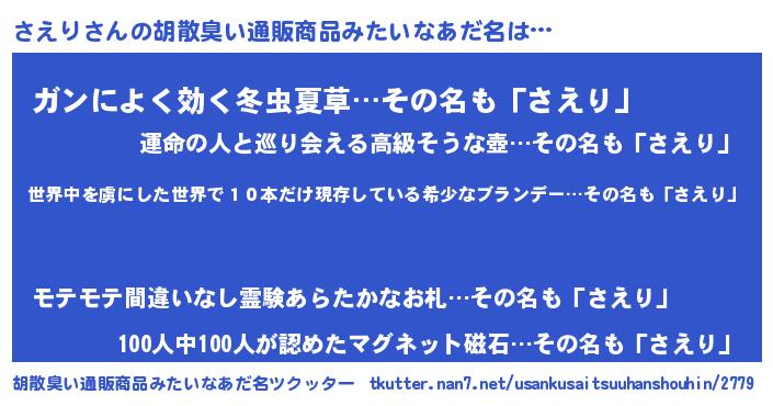 | 意味不明あだ名 | 『住所不定無職さえり(91歳)』『自称さえり』 |