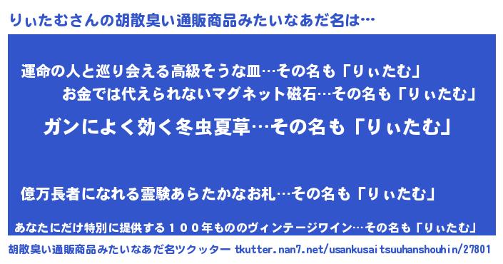 | 意味不明あだ名 | 『自称りぃたむ』『りぃたむフォーエバー』 |