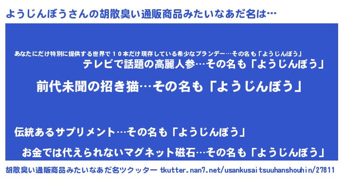 | ヘコむあだ名 | 『ようじんぼう(小並感)』『ようお』 |