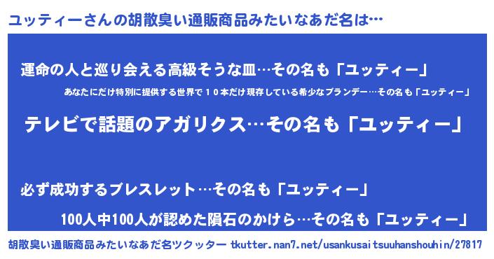 | 意味不明あだ名 | 『自称ユッティー』『ペロリンユッティー』 |