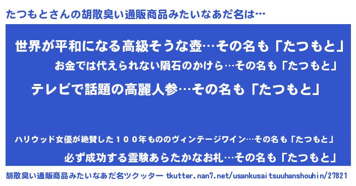 | 意味不明あだ名 | 『自称たつもと』『たつもとフォーエバー』 |