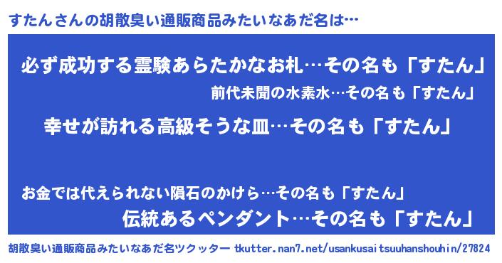 | ヒーロー風カッコイイあだ名 | 『ウルトラすたんマン』『スーパースタン』 |