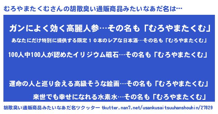 | ポケモン風あだ名 | 『ムロゴンZ』『ムックウザ』 |
