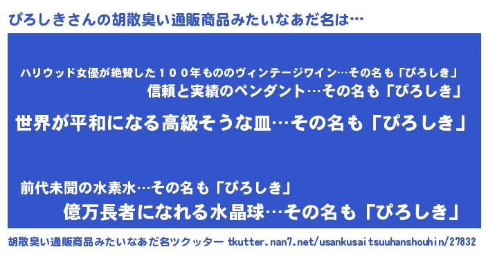 | 意味不明あだ名 | 『ぴろしきフォーエバー』 |