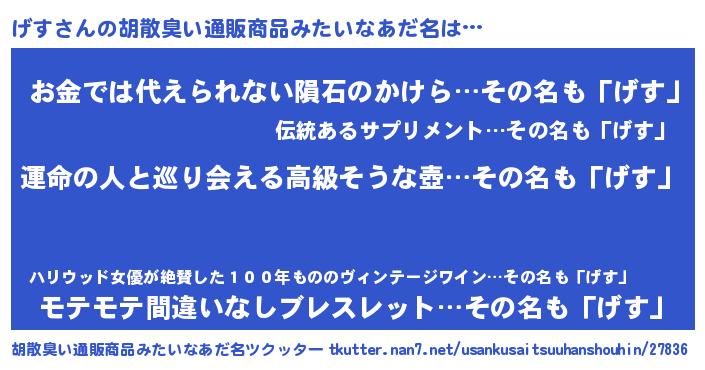 | ヒーロー風カッコイイあだ名 | 『ウルトラげすマン』『友情の使者げす』 |