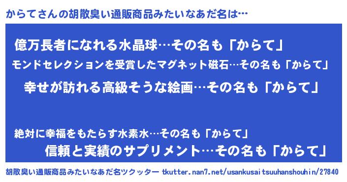 | 女子向けラノベタイトル風あだ名 | 『からての雑貨屋さん』 |