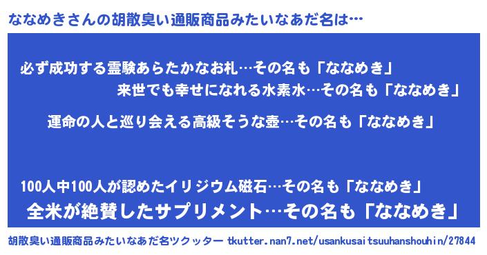 | ファンタジー風あだ名 | 『エターナルナナメキー』『ナナフェル』 |