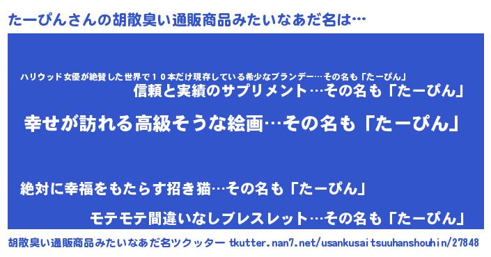 | 意味不明あだ名 | 『たーぴんフォーエバー』 |