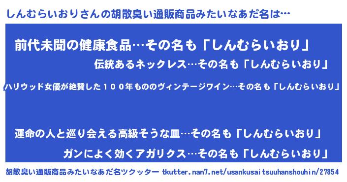 | 意味不明あだ名 | 『住所不定無職しんむらいおり(12歳)』 |