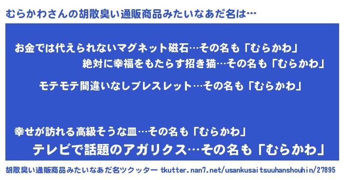 | ヘコむあだ名 | 『むらふぇ~』『むらかわ(小並感)』 |