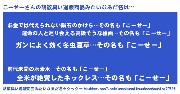 | 意味不明あだ名 | 『自称こーせー』『こーせーフォーエバー』 |